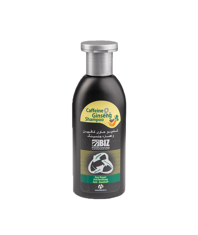 شامپو حاوی کافئین و عصاره جنسینگ BIZ با بکارگیری عصاره خالص جنسینگ قرمز کره ایی به مشتریان خود این امکان را داده تا بااستفاده از این محصول شادابی و طراوت را به موهای خود هدیه دهند. این شامپو با استفاده از سورفکتانت های بسیار ملایم مو هارا تمیز کرده و با تنظیم PH پوست سر سلامتی موها را تضمین می کند.